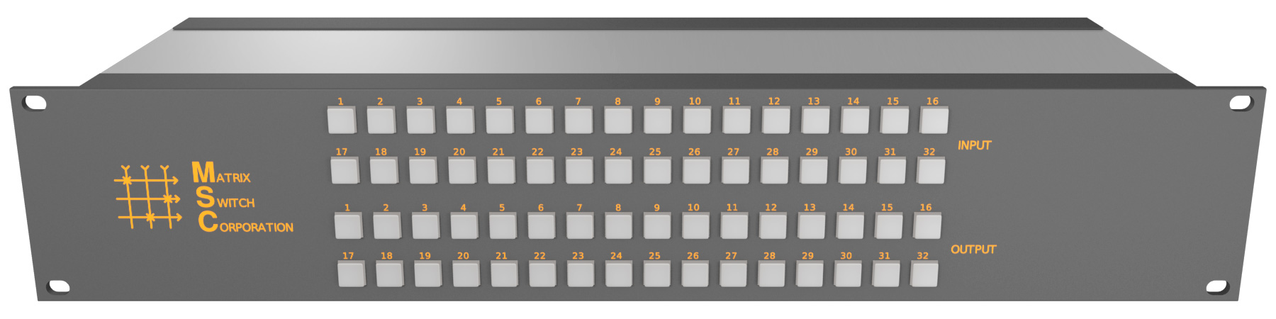 An extra audio option provides audio routing capabilities in addition to the included embedded SDI audio routing support. This option is ordered as a separate 2RU device connected via a D25 straight through male to male cable. Either AES digital (MSC-DE3232) or analog stereo audio (MSC-AA3232) can be chosen.