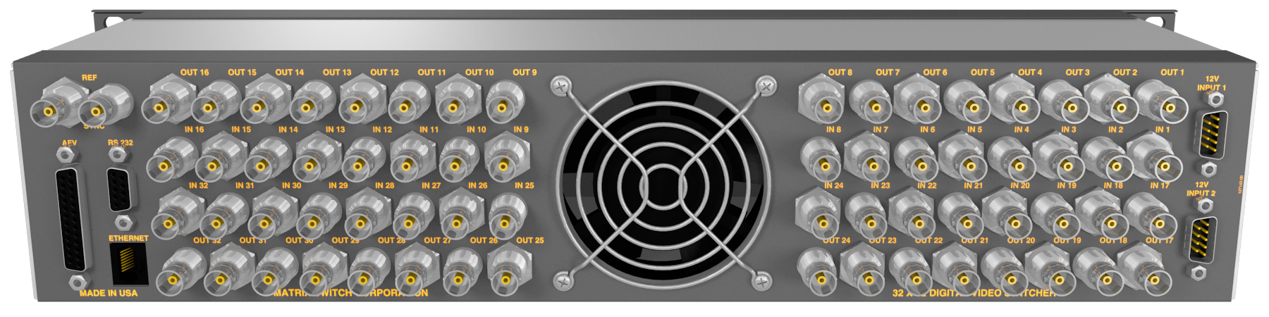 Matrix Switch Corporation 'Configurable 2RU SDI Video Routing Switchers' offer factory configurable matrix size configurations in input OR output increments of 8 up to 32x32 for a total of 12 different sizes. These systems are 2RU in height and less than 7 inches deep, allowing for installation in space and weight limited situations.