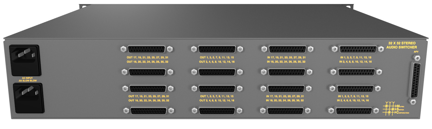 Matrix Switch Corporation's analog audio routing switchers are available in a variety of configurations and utilize D25 connectors for inputs and outputs at +24DBm and 120dB S/N ratio.