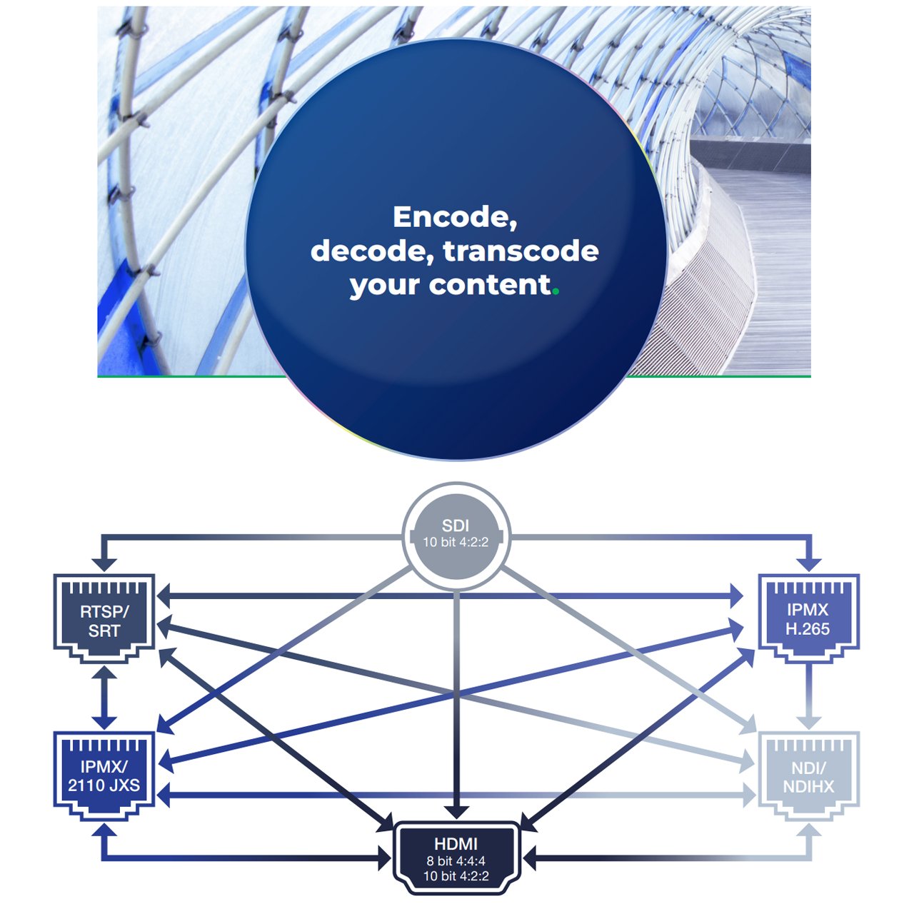 • IPMX to/from ST 2110 Compressed-to-compressed