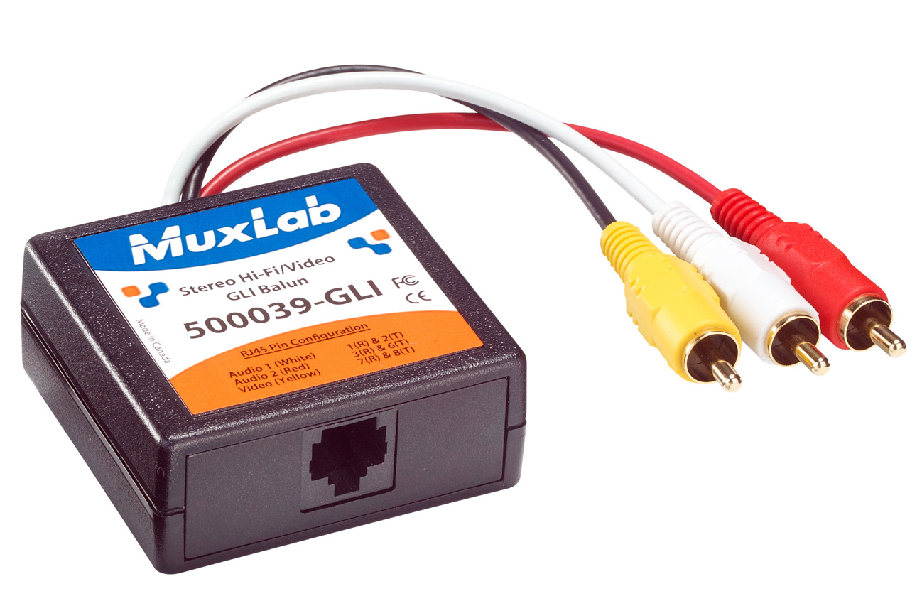 The Stereo Hi-Fi/Video GLI Balun (500039-GLI) allows a single composite video signal to be transmitted via unshielded twisted pair (UTP) cable up to 2,200 ft (670m) in a point-to-point connection. The Stereo Hi-Fi/Video GLI Balun features full audio bandwidth response for high fidelity applications and features Ground Loop Isolation (GLI) to help eliminate "hum" bars. Only one 500039-GLI is required per connection and may be used in conjunction with the 500001, 500039 and 500200. The 500039-GLI is recommended where ground loop issues are present or of potential concern and may be applied in applications such as residential, classroom and boardroom AV systems.