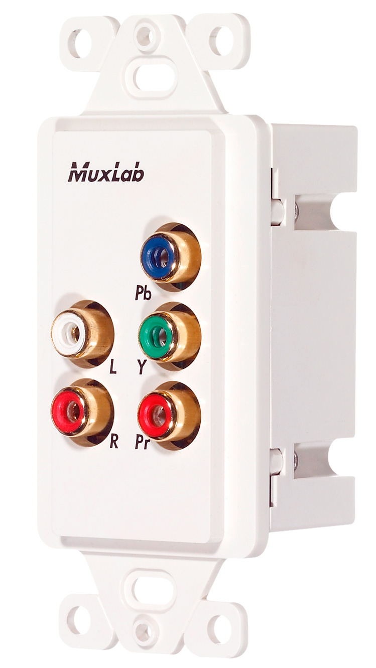 The Component Video/Stereo Audio Wall Plate Balun(500058-WP-US) allows one component video (YPbPror RGB) signal and one (1) Stereo Audio channel to be transmitted via one (1) Cat5e/6 twisted pair cable for more cost-efficient cabling. The product fits Decora™ compatible outlet boxes for neater wall mount installation.
