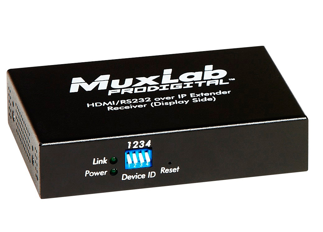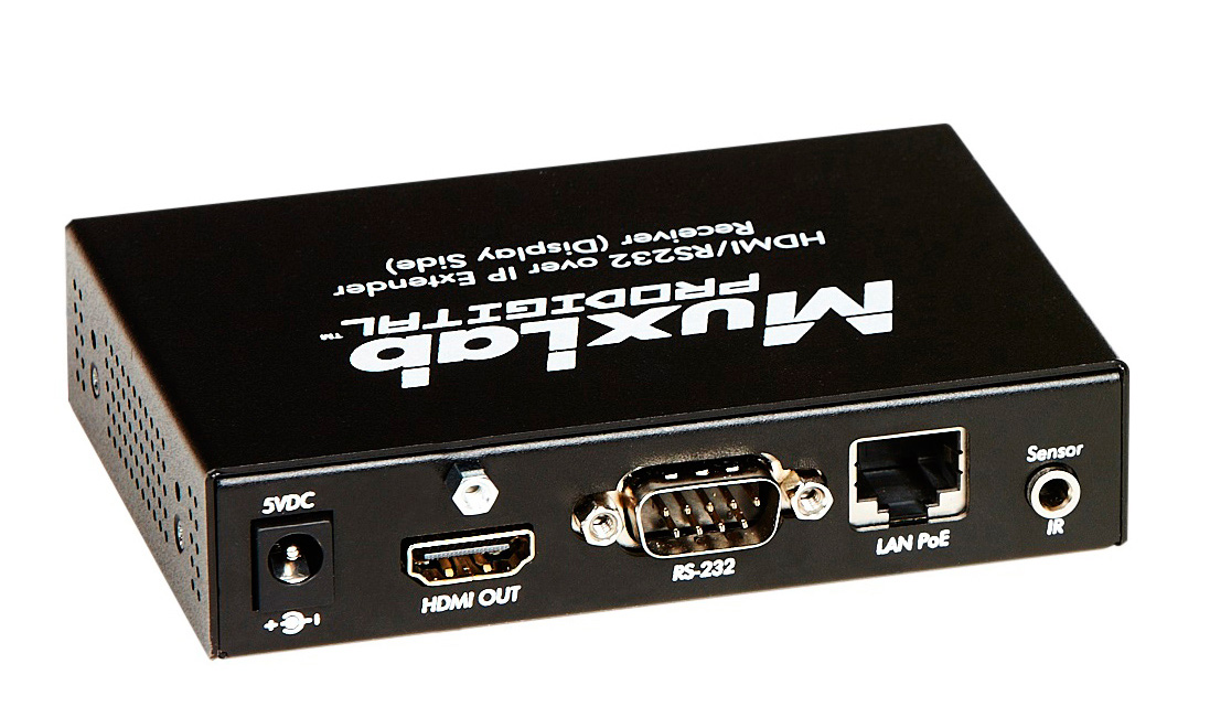 The HDMI / RS232 over IP Receiver with PoE allows HDMI equipment to be connected up to 330 ft. (100m) @ 1080p via one (1) Cat5e/6 unshielded twisted pair cable in a point-to-point configuration.