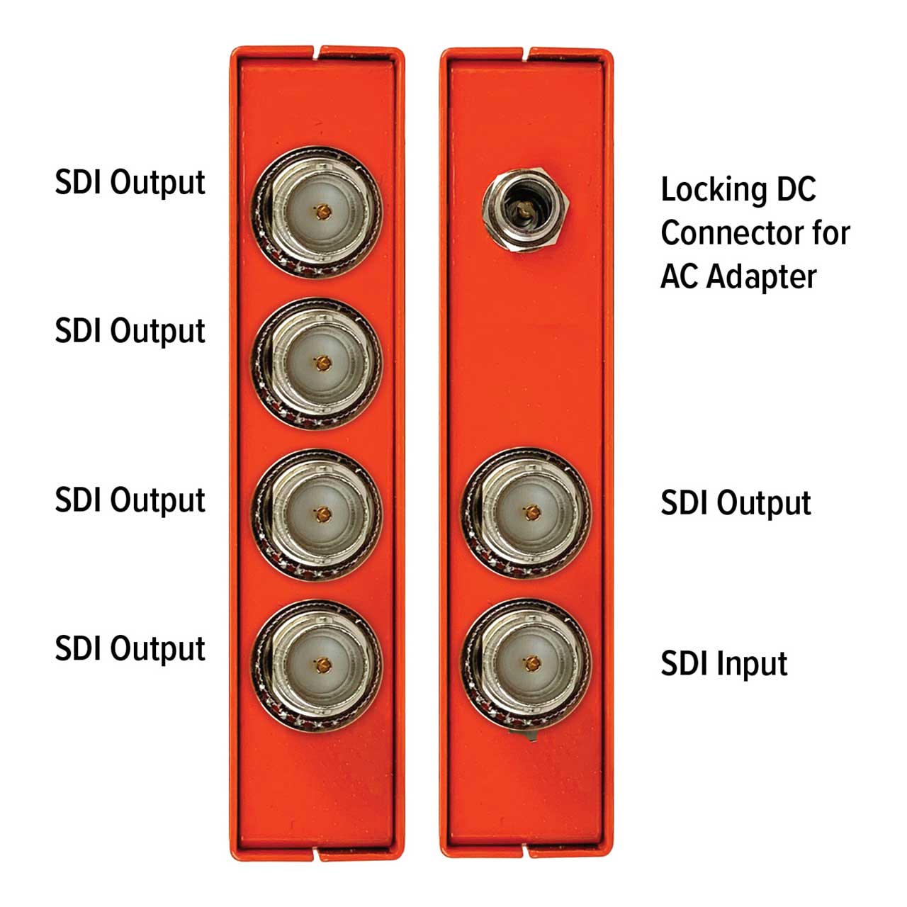 A dual-color LED indicator provides an SDI signal status indication. A green LED indicates the unit is locked to a valid SDI signal while a red LED indicates a valid SDI signal is not present at the input.