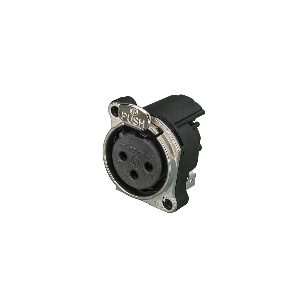 NEUTRIK NC3FBH1 3 pole female XLR receptacle, grounding: mating connector shell to pin1 and front panel, horizontal PCB mount
