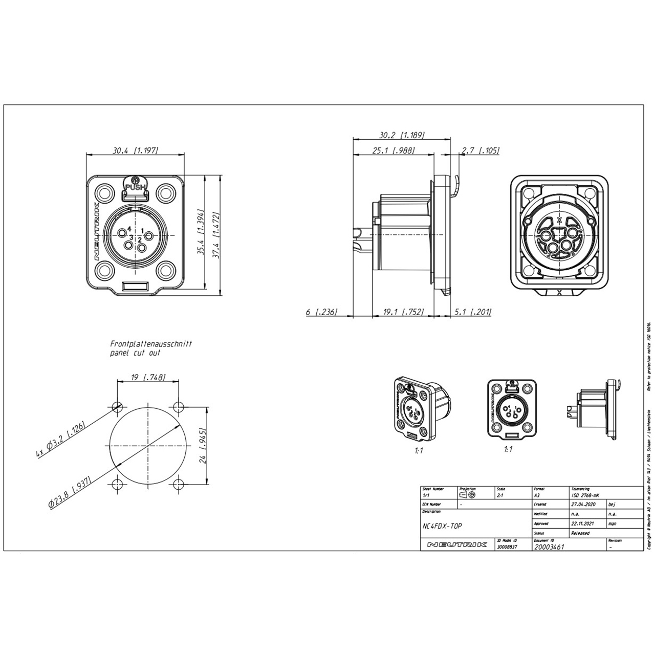 - IP65 rated and TOP approved in consideration to UL50E by mating with related cable or chassis connector of the XLR TOP range