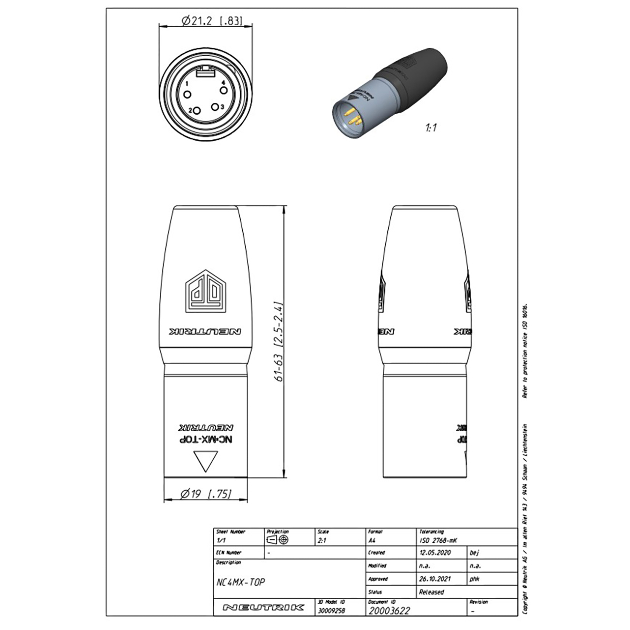 - Protection Class acc. IEC 60529: IP65 (mated)