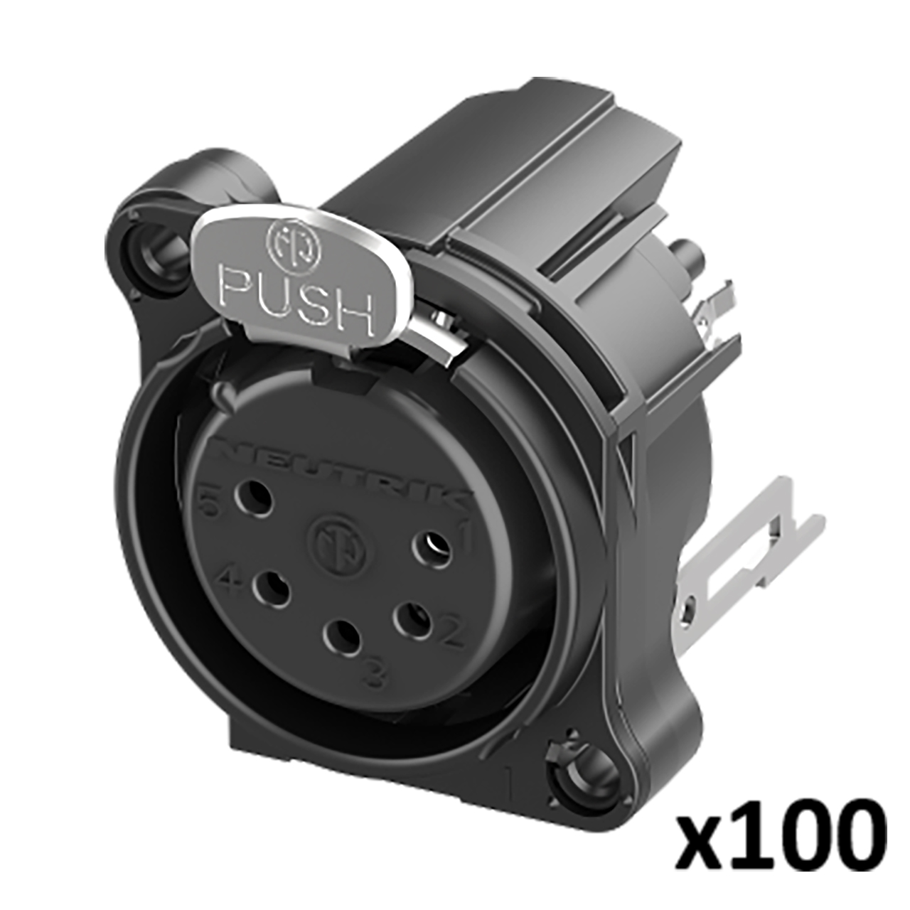NEUTRIK NC5FBV1 5-Pin Female XLR Connector with Vertical PCB Mount - Black - 100pk