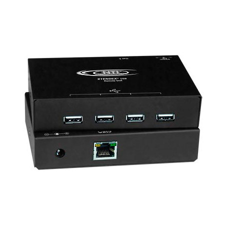 The XTENDEX USB Extender extends four USB devices up to 200 feet using CAT5/5e/6/7 cable. Each extender consists of a local unit that connects to a computer, and a remote unit that connects to four USB devices. The local and remote units are interconnected via CAT5/5e/6/7 cable.