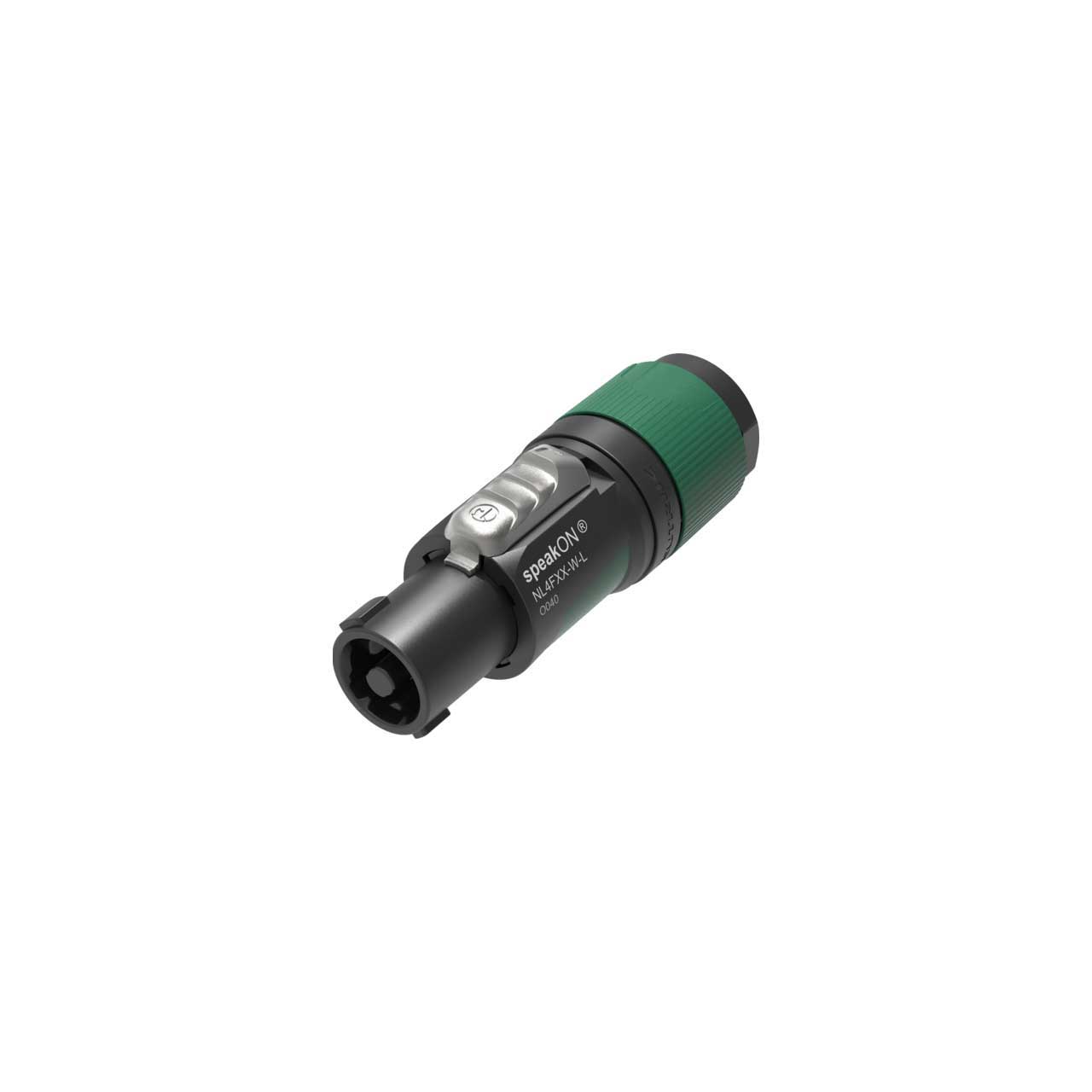 Neutrik NL4FXX-W-L 4 pole speakON cable connector, screw terminal assembly, chuck type strain relief for cable diameters 10 to 16 mm