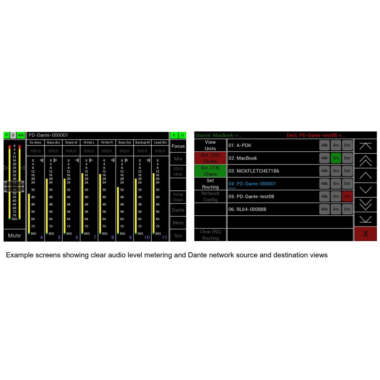 Firmware updates of the RD Dante are achieved via a dedicated USB B connector on the front panel. There is also a dedicated 6.35mm jack socket for the headphone output and a 6.35mm jack socket to input a line level source such as an iPod etc.