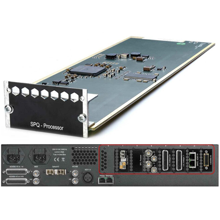 The NTP CARD-SPQ system consist of a DSP card that you can install in one of the 8 card slots of AX32. The SPQ Speaker Processor System is extremely flexible and you can match it to any speaker configuration, including immersive audio formats such as Dolby Atmos.