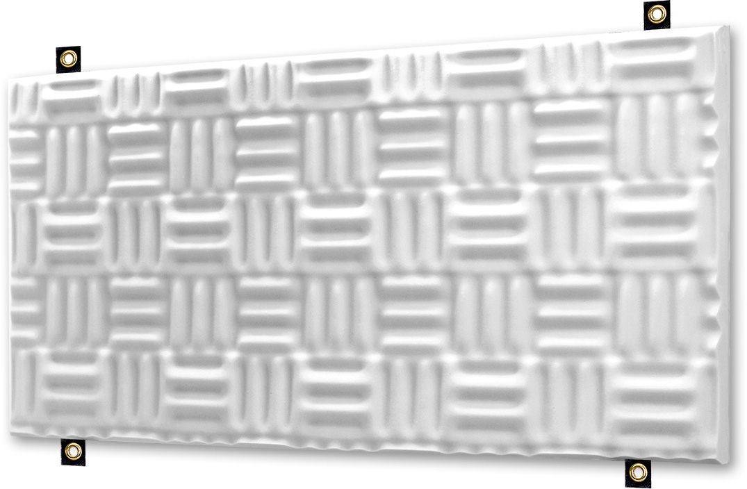 SONEX Baffles are designed to hang from ceilings in large rooms such as gymnasiums and manufacturing areas. SONEX Baffles effectively reduce noise & eliminate echoes common in these areas. Baffles are 24 Inch x 48 Inch and feature integrated nylon webbing straps for easy hanging. SONEX Baffles are FIBER-FREE and ASTM E 84 Class 1 rated for low flammability.