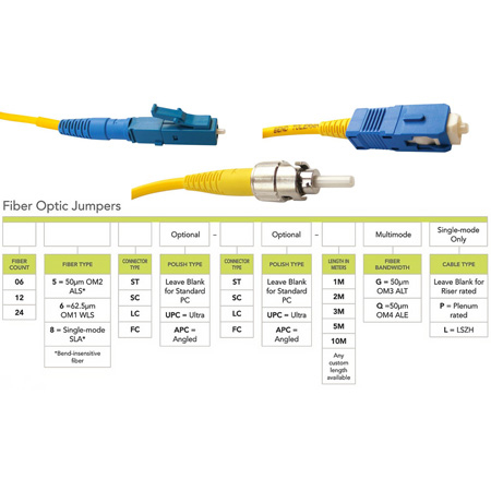 Get exactly the jumper you need to make the transition from cross-connect point to the electronics. With unmatched insertion loss and exceptional return loss, OCC’s full line of fiber jumpers ensures the right connection every time. The D6SC-SC-3M discrete connectors utilize ceramic ferrules. Listening to customers in the industry, OCC has standardized on the AE series 2.0mm fiber cable for any simplex or duplex jumper that has one or two LC’s attached. The AX series 3.0mm fiber is used for all other connector types. For 50/125 and 62.5/125 jumpers, the standard jacket color is orange. For OM3 and OM4, the standard jacket color is aqua. For single-mode jumpers, the standard jacket color is yellow.