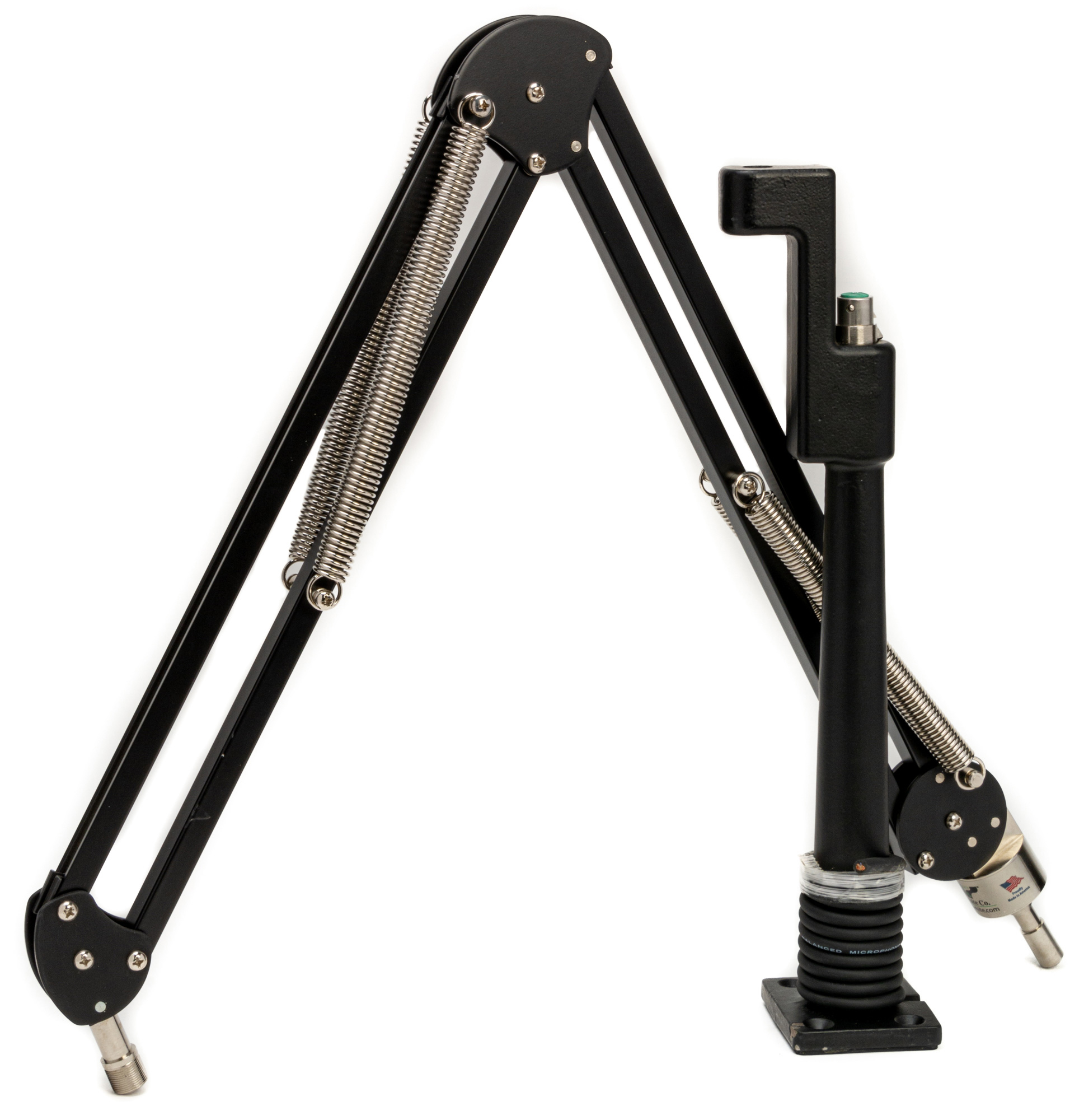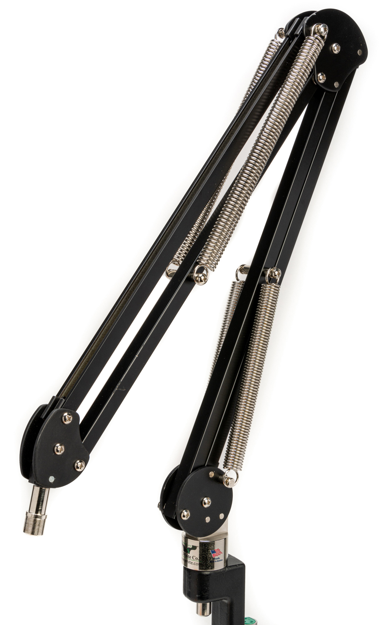 The brand new OC White 61900 Proboom Elite is the result of a massive engineering effort to produce the perfect mic boom. The quality of the arm becomes readily apparent when you notice that in place of the typical noisy steel springs other manufacturers are content to use, OC White has used a proprietary gold plated, music wire spring.The newly designed 15" riser is designed to be as unobtrusive as possible & is suitable for mounting behind computer monitors or speakers.The riser provides an integrated invisible wire channel with a prewired XLR (removable) on thetop.Three feet of pigtail cable extend from the units dual cable exits (bottom or side) allowing for flexible wiring setups. Black.