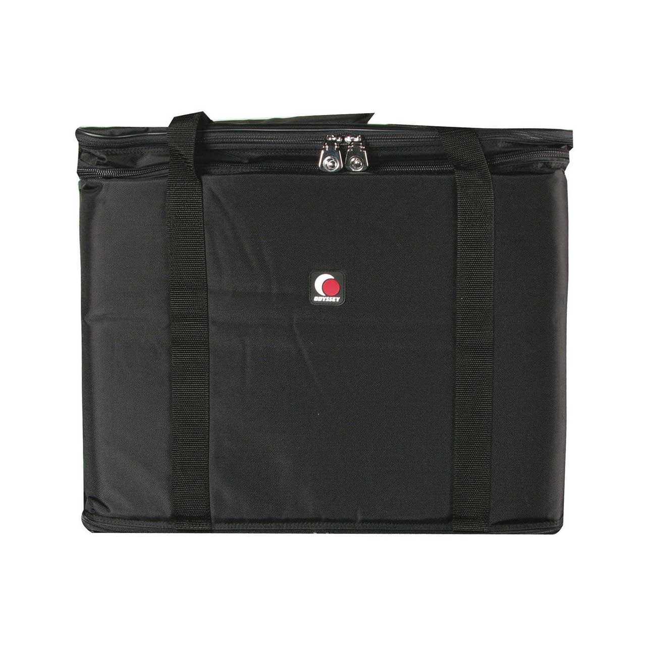 The Odyssey Cases BR416 is a denier ballistic nylon rack bag that resists the rigors of transportation. The stylish zipper pulls are chrome plated and can be locked together for added security. Roomy outside zippered pocket allows for storage of essentials such as mics, cables, etc. 4 spaces (7.00 in.) high, 16 in. deep.