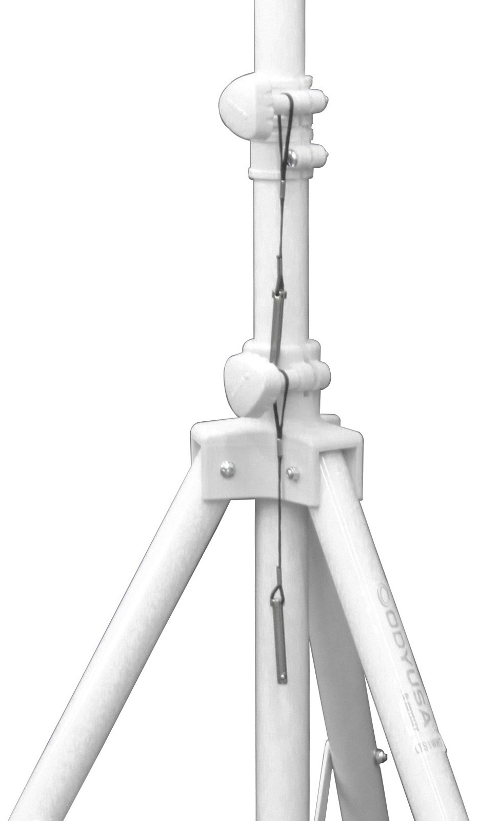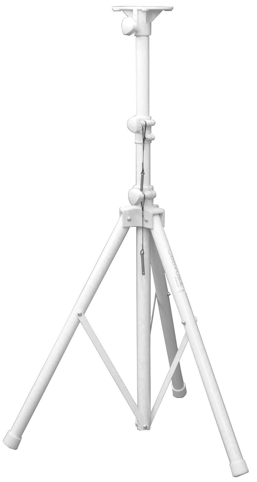 The Odyssey LTS1WHT white Tripod Speaker Stand extends up to 6 ft. tall. Constructed with high quality aluminum/steel tubing, it has a maximum load capacity of 100 lbs. evenly distributed. Also available in all black (LTS1). See the optional BLTUNI tote accessory stand bag, a must for transporting and storing your tripods.