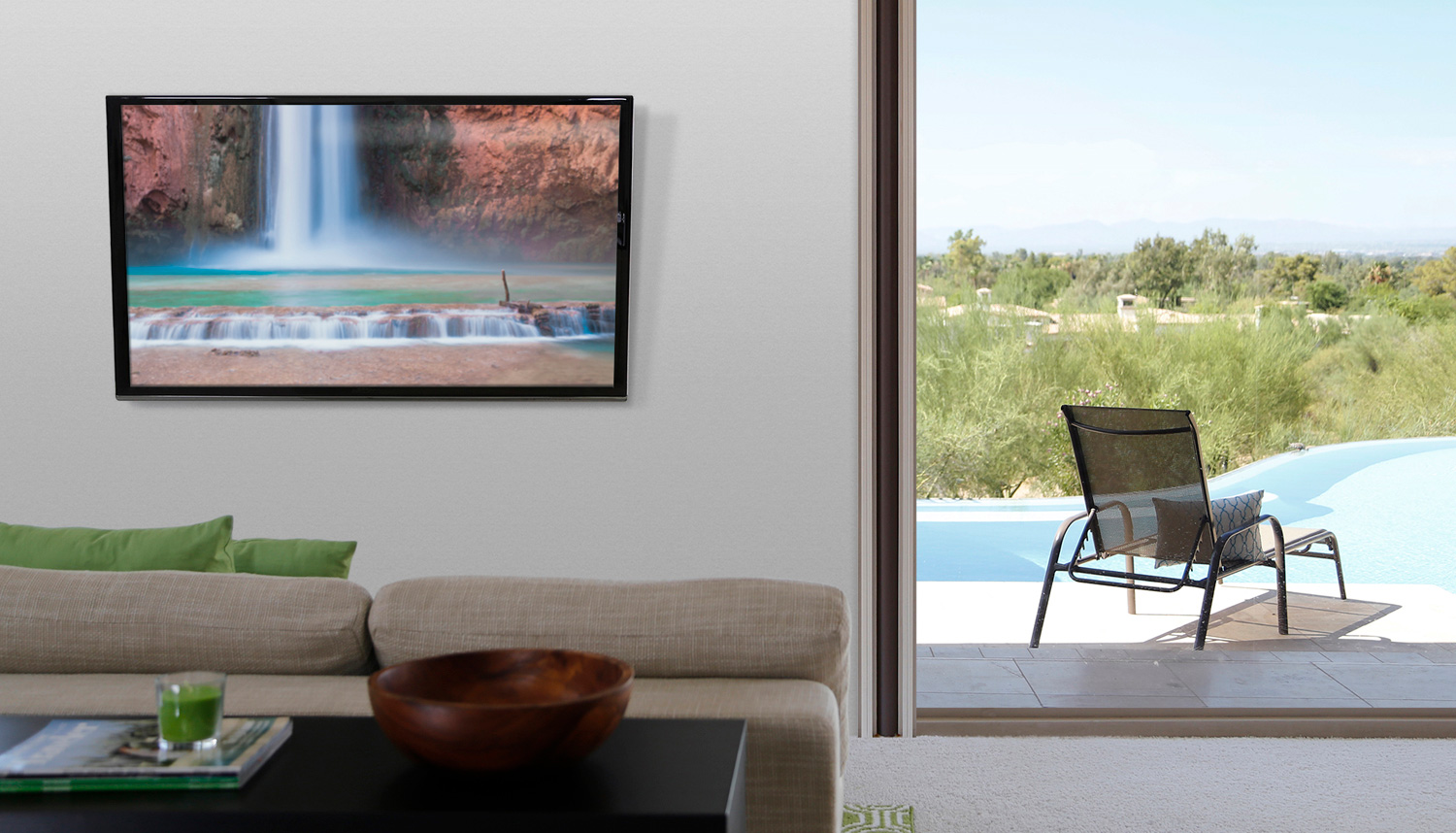 The OmniMount's OC120F is a low-profile large TV wall mount. With a capacity of 120 lbs, it is compatible with most flat panel displays up to 70" on the market today.