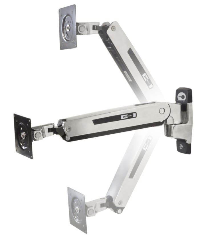 The OmniMount PLAY25 Interactive TV Arm allows you to make the most of your TV investment with a monitor arm that accommodates every activity comfortably! Move your flat panel every-which-way to position your screen near the floor (for activities like exercising) or up high (while standing, gaming or group viewing). This mount is equipped with patented Constant Force technology, for fluid, light-touch adjustments and effortless positioning. Don't just sit in front of your TV - interact with it!
