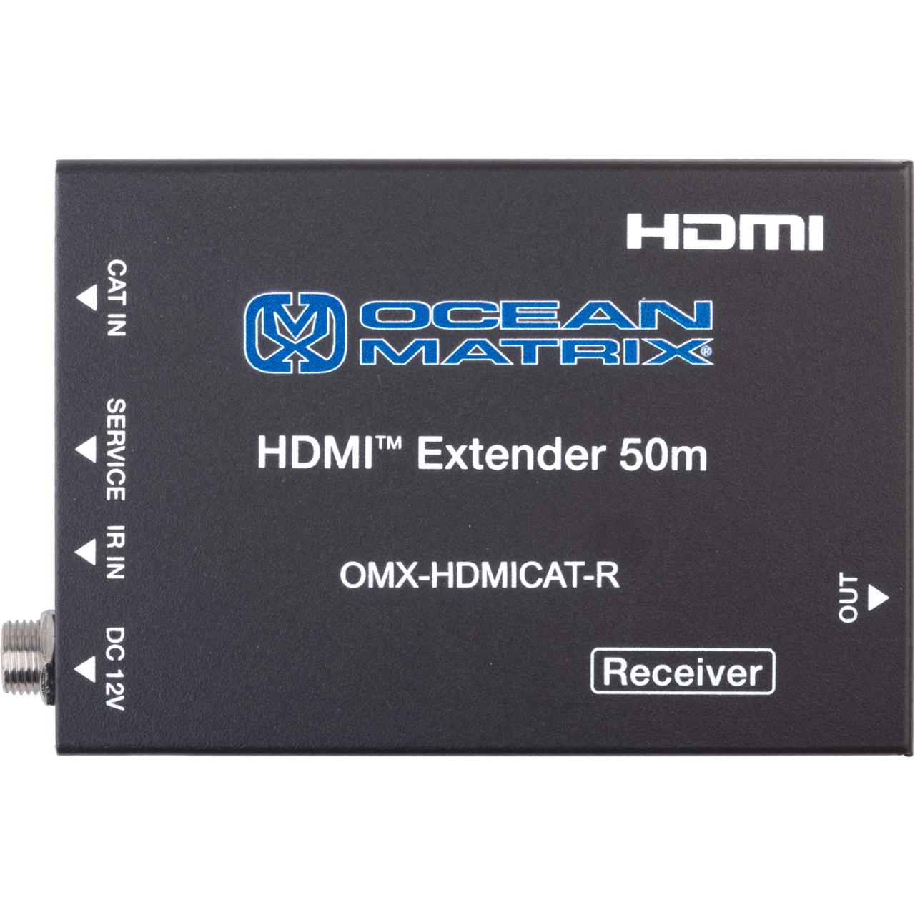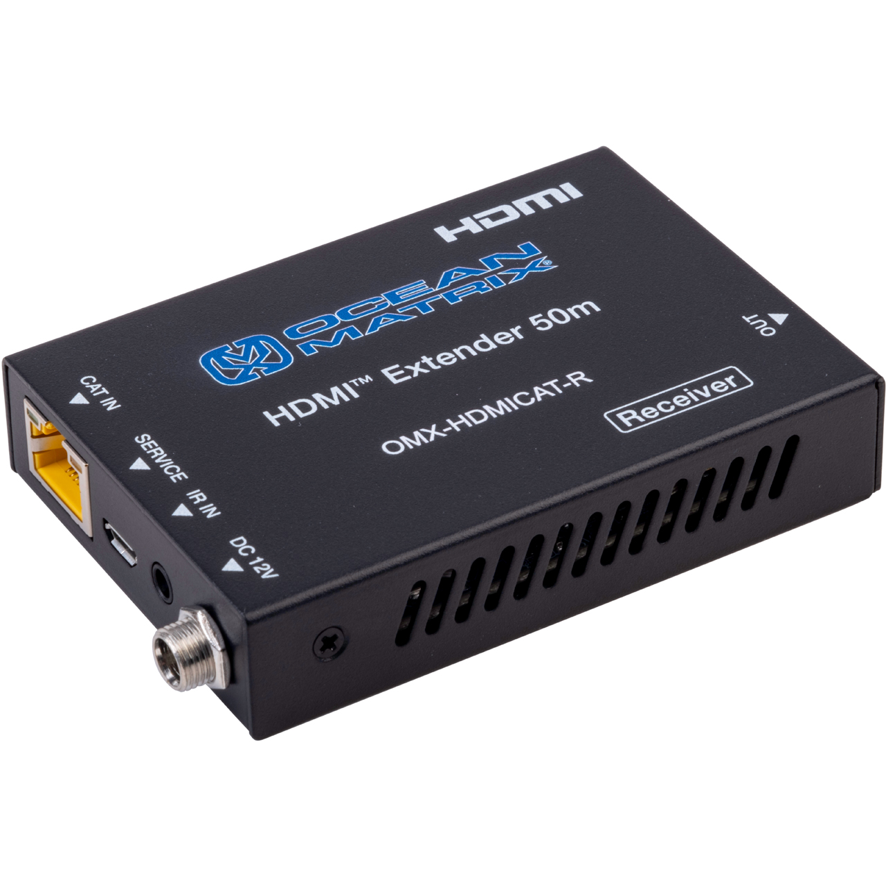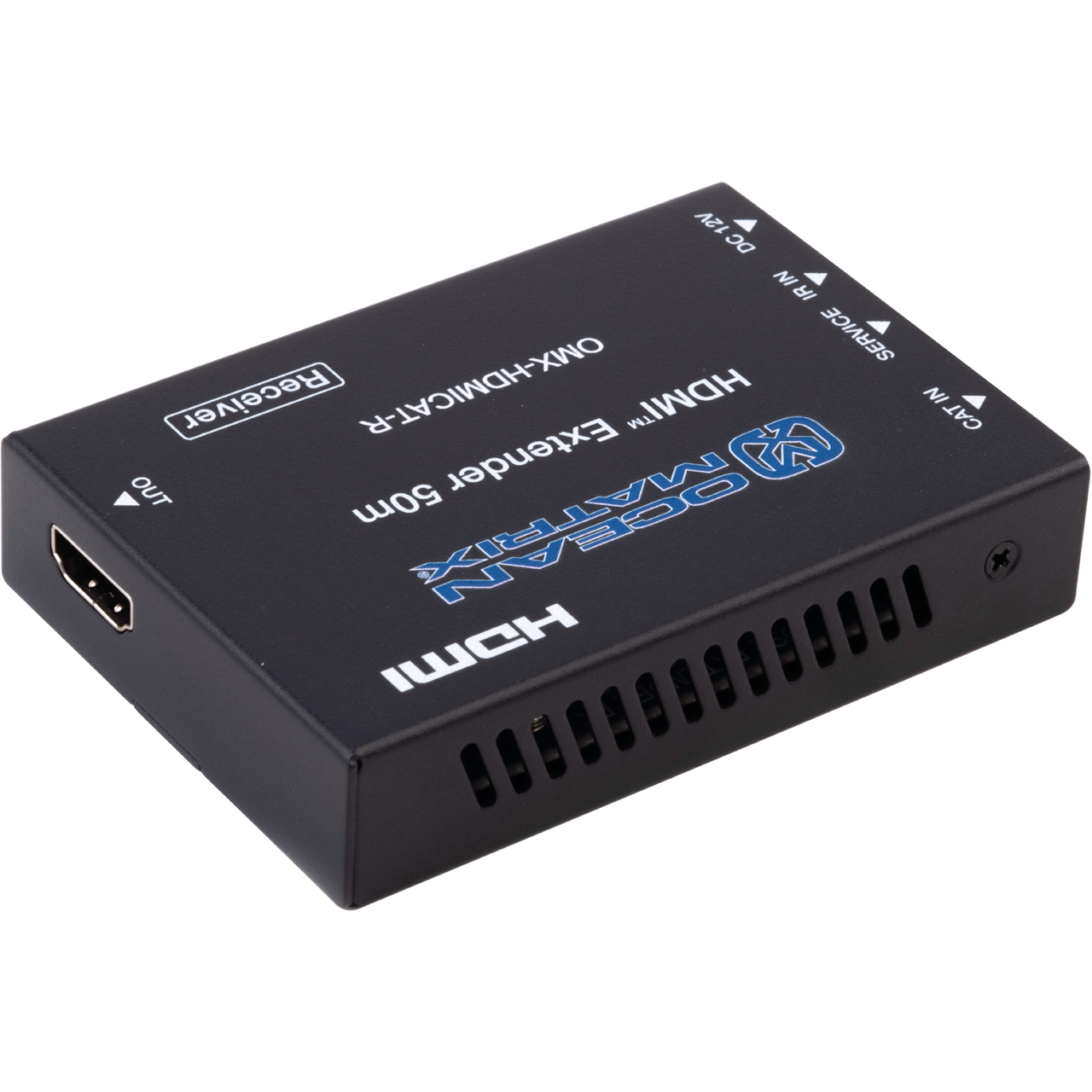 The Ocean Matrix OMX-HDMICAT-R can also be used with the OMX-01HMET0003 18Gb 4K extender system, which supports and sends 4K2K@60Hz 4:4:4 HDMI signals up to 197 feet over Cat6/6a/7 cable and up to 164 feet over Cat5e. It is fully compatible with HDCP 2.2 and offers one-way IR control for source devices. It also has an HDMI Looping output on the transmitter and EDID at the receiver to ensure display compatibility.