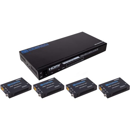 Distribute and extend HDMI signals in brilliant 4K quality to 4 displays at a range over 100 feet with the Ocean Matrix HDMICAT1X4. This system is perfect for digital signage applications in sports bars, restaurants and businesses as well as trade show booths and similar live event spaces. The HDMICAT1X4 supports Power Over Copper to simplify installations at displays or projectors and the system also offers built-in EDID management to ensure your signals are always on.