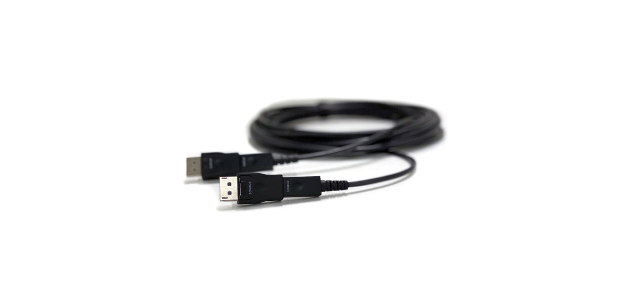 Ophit FTAD2 is a detachable AOC (Active Optical Cable) for DisplayPort standard. The FTAD2 consists of a transmitting and receiving parts, both of which are connected by a hybrid cable (Optical cable + electric cable). The FTAD's transmitter is connected to the Display Port source device, and the receiver is connected to the DisplayPort sink device. The mini-Displayport connector can also be used by connecting each source and sink device. With FTAD2, Video/audio signals can be transmitted up to 328 feet (100m) when a system using DisplayPort standard is used. It is possible to transmit the DisplayPort specification signal of the UHD bandwidth without loss.