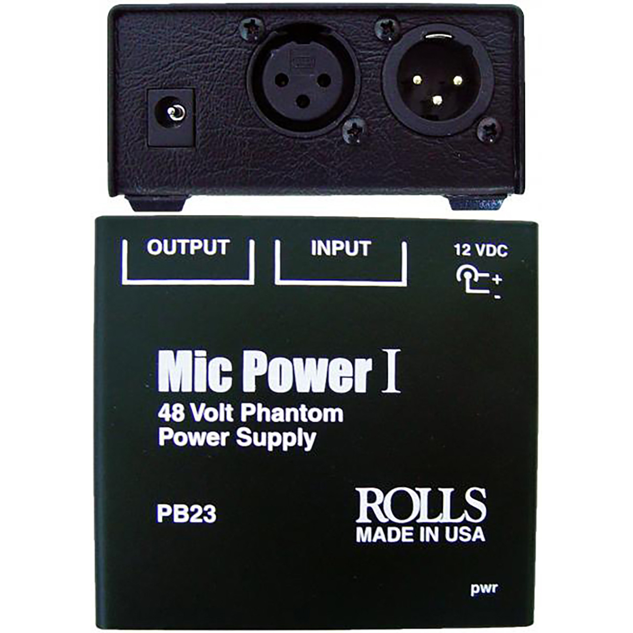 The Rolls PB23 is for powering phantom powered microphones with 48VDC. Since the unit uses a 100KHz switching power supply there is no audio noise generated. It has an output pull down resistors so it will work with any mixer. The Rolls PB23 is a simple inline solution to provide 48 volts of clean DC power to your favorite condenser microphone whenever a mixer cannot provide phantom power.