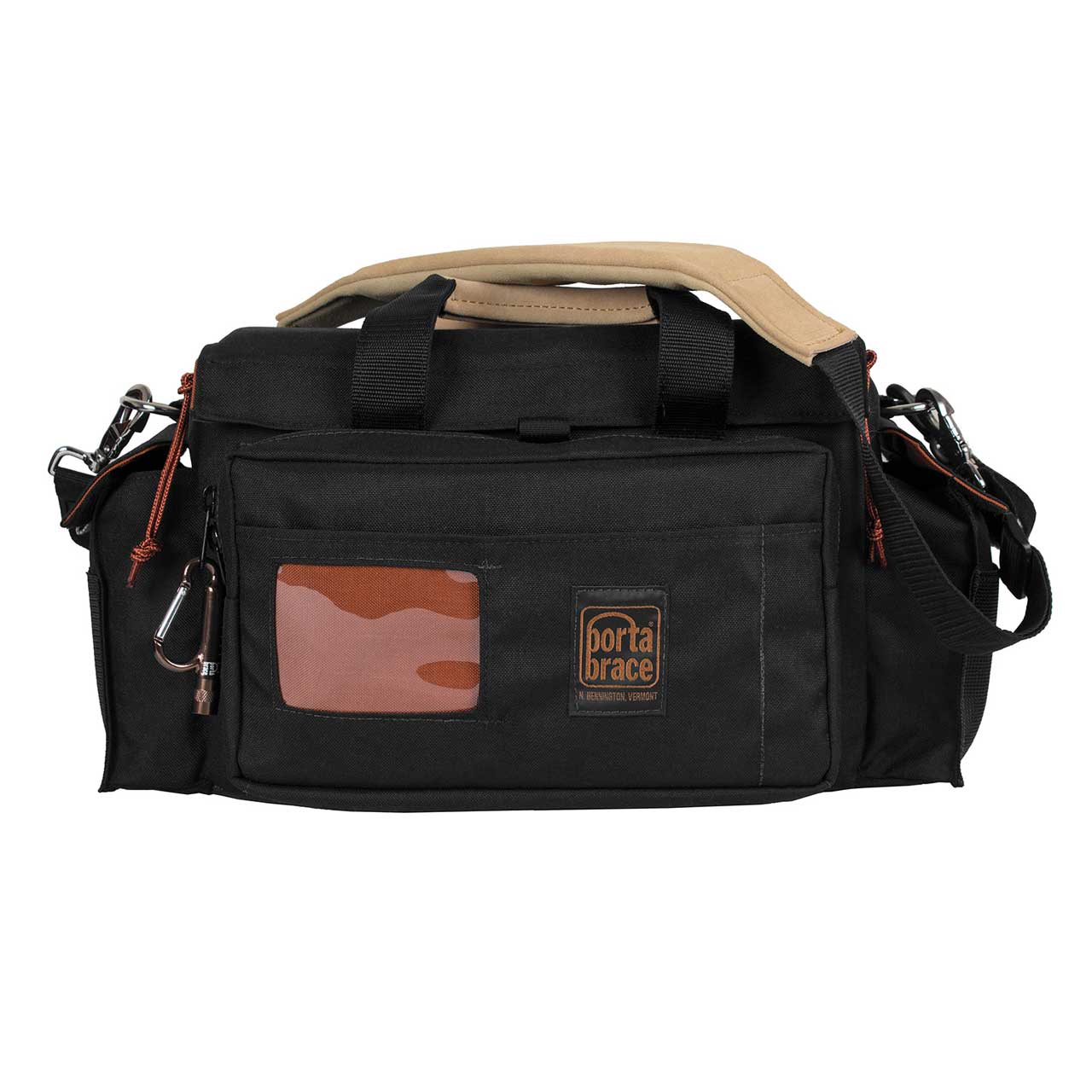 The medium-sized Portabrace PB-BSCCB is shaped by a full width, rigid panel, between layers of Cordura Nylon and is crushproof. They have a bonded foam and plastic, lightweight rigid lid. This case is designed to hold the BlueShape 4 V-Mount Battery Station or the BlueShape 4-Channel Charging and Monitoring Utility. Mesh pockets in the lid provide convenient access to things often used. Two side pockets and a large mesh slip pocket provide room for extra gear. The PB-BSCCB comes with a comfortable HB-1040 suede shoulder strap.
