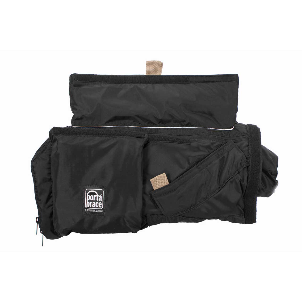 The Portabrace POL-FS7 Polar Bear Camera Cover is designed to keep the Sony PXW-FS7 warm in cold temperatures. It has a black nylon fabric exterior and is thickly padded and constructed of high-loft insulation. The interior is lined with a temperature-stabilizing, phase-change material (PCM) that helps keep warm air in the camera chamber. Air activated warmers can be placed inside the case to maintain interior temperatures in extreme cold temperatures (Portabrace Polar Covers have been tested at minus 50 degrees Fahrenheit).