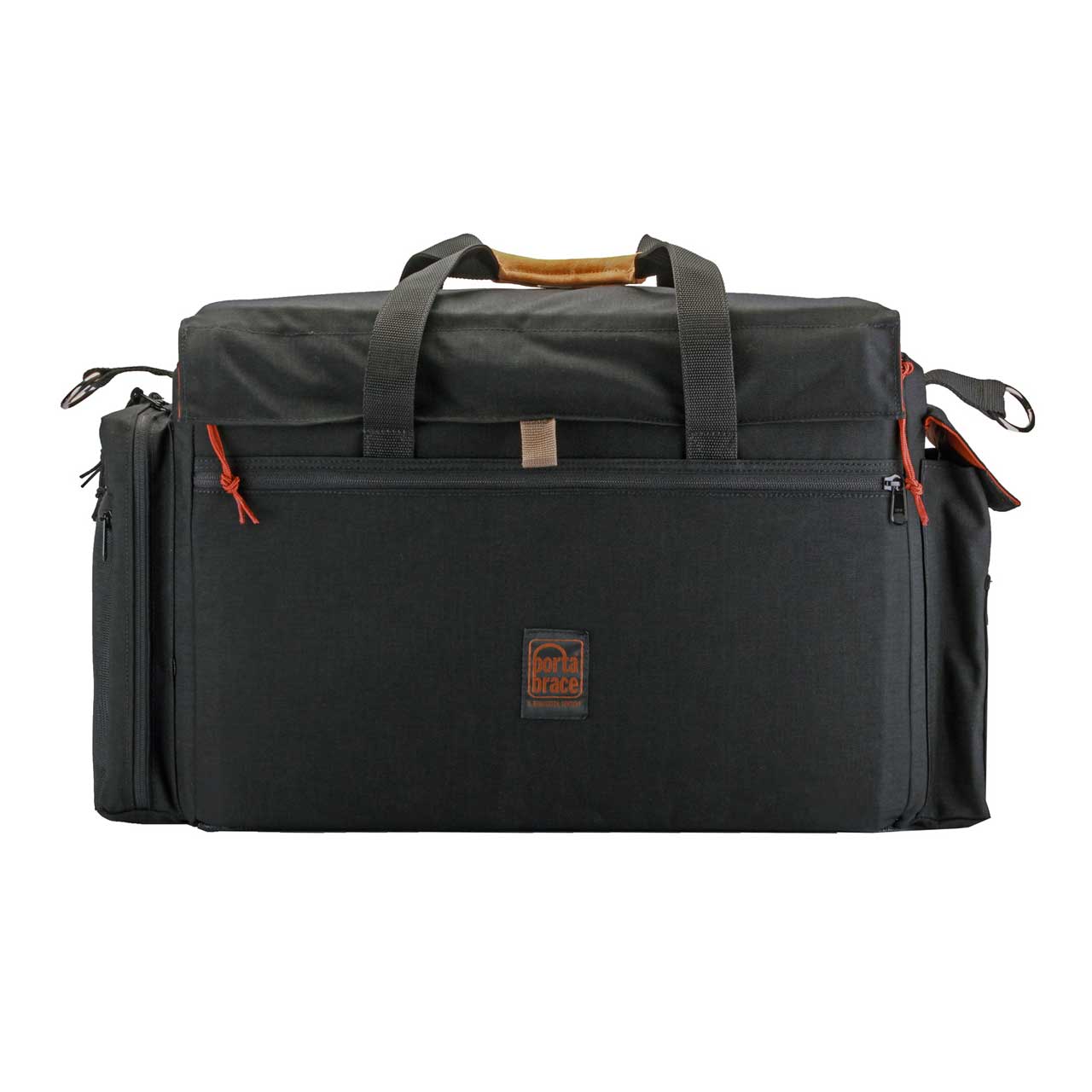 The main compartment is accessed via strong YKK zippers and a secure Velcro strip along the front flap. The compartment is empty and can be configured to meet your needs using Porta Brace's included 7 x 13" divider, Camera Tie-down Cinch and Camera Support Block (foam block). The case also comes with two padded lens cups and a handy white balance card. Two large accessory side pockets are accompanied by a front slip pocket for various accessories.