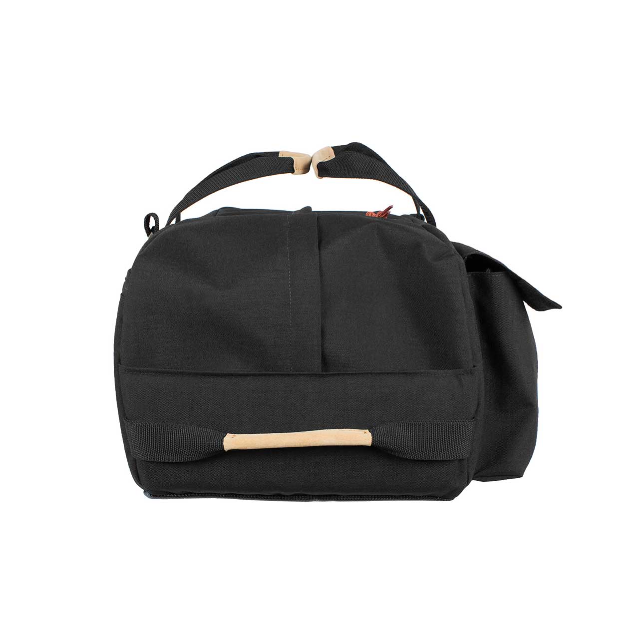 The main compartment is accessed via strong YKK zippers and a secure Velcro strip along the front flap. The compartment is empty and can be configured to meet your needs using Portabrace's included 7 x 13 in.divider, Camera Tie-down Cinch andCamera Support Block (foam block). The case also comes with two padded lens cups and a handy white balance card. Two large accessory side pockets are accompanied by a front slip pocket for various accessories.