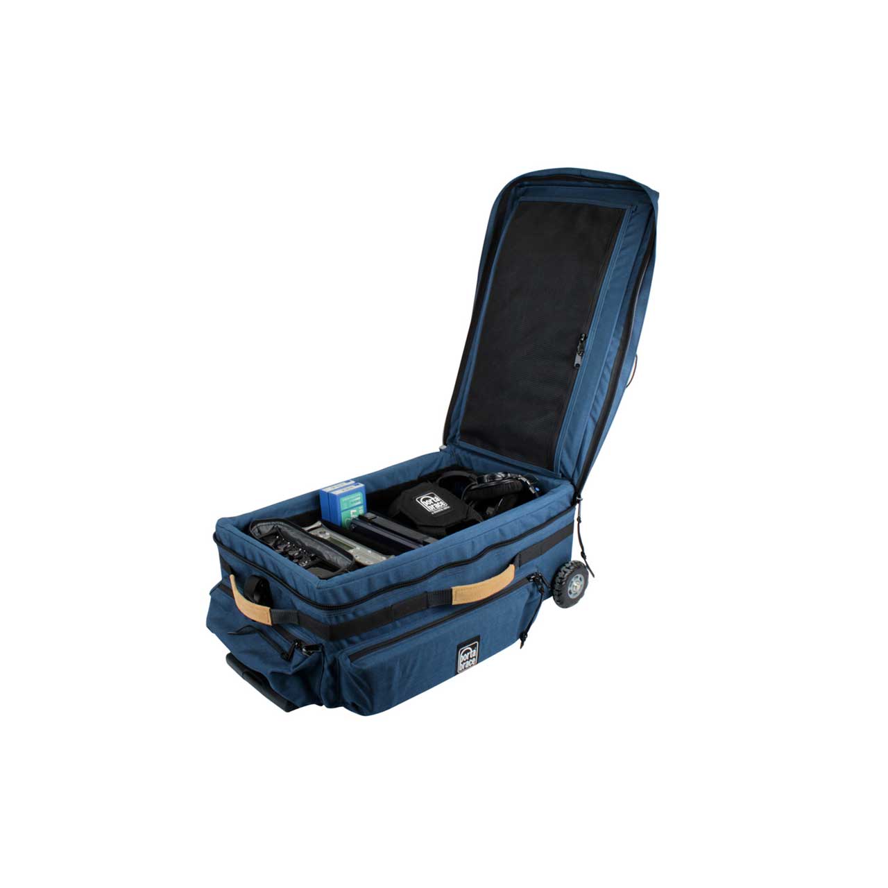 The Portabace WPC-1ORAUD Wheeled Production Case is made for transporting all kinds of audio equipment. The cases are designed to be used for handling gear on location as well as transporting apparatus to the job site. They are constructed of a strong ridged interior frame covered with 1000 denier Cordura nylon fabric, with padded protection all around.