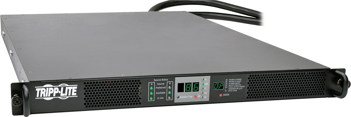 Tripp Lite's PDU330AT6L2130 8.6kW 3-Phase 208V ATS/Monitored PDU provides remote power monitoring and enables redundant power for network devices with non-redundant power supply configurations. Working in tandem with a required 0U vertical outlet accessory (sold separately; choose from PDU3V20D354, PDU3V20D354A or PDU3V20D354B), the 1U PDU330AT6L2130 is ideal for data centers and server rooms. Tripp Lite's breakthrough 3-phase rack ATS (U.S. Patent 9,467,006) provides rapid coordination of unsynchronized phases without dropping loads and operates with the high efficiency and reliability required for data center applications.