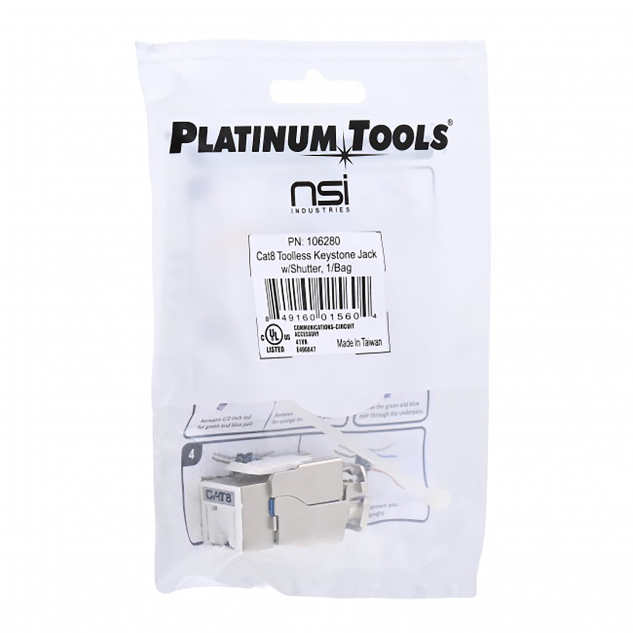 Platinum Tools 106280 Cat8 Shielded Toolless Keystone Jack with Shutter