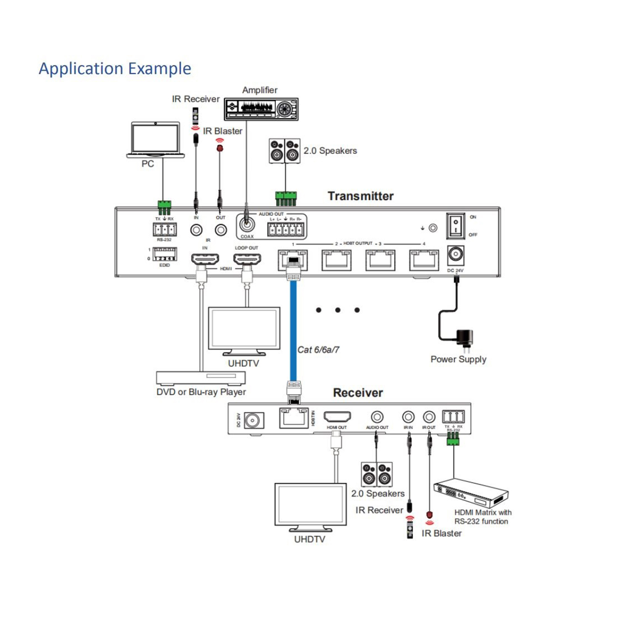 • Distance: Up to 390ft (120m) 4K2K@60 and Up to 1080p60 490ft (150m)