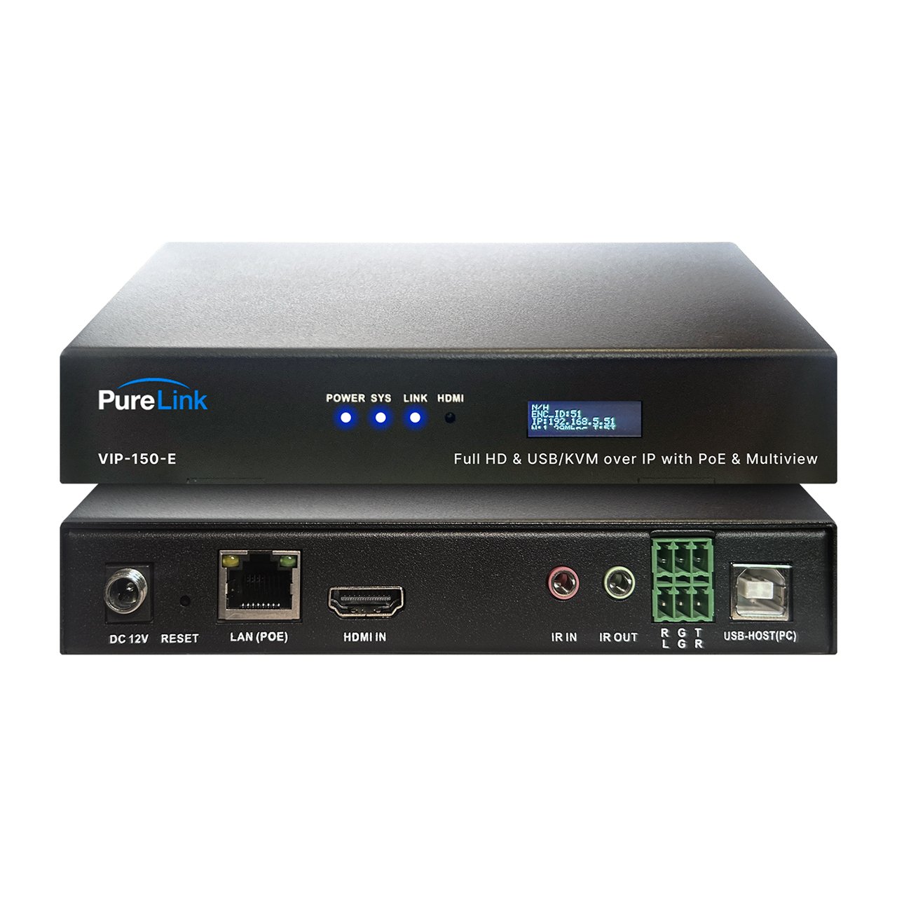 The PureLink VIP-150-E is a Full HD HDMI & USB/KM AV over IP Encoder, part of the VIP-150 Multiview AV over IP system, delivering high-quality 1080P60 4:4:4 video, USB, and high-res audio over IP networks. It supports point-to-point extension up to 394ft (120m) via Cat6a and accommodates various signal types for dependable distribution, switching, and matrixing needs. The VIP-150 AV over IP system provides instant image switching and easy connections of inputs and output using the visual VIP-150 iCON Lite control interface. VIP-150 iCON Lite also makes creating a multiview arrangement on your display simple with drag and drop. Also, create up to 10×10 video walls easily, and embedding and de-embedding audio is automatic by simply connecting your auxiliary audio input, or connecting the audio output of the decoder to your audio system or processor. Grab the RTSP stream to display thumbnails on your control interface for easy identification of the source program, for assignment to your displays.