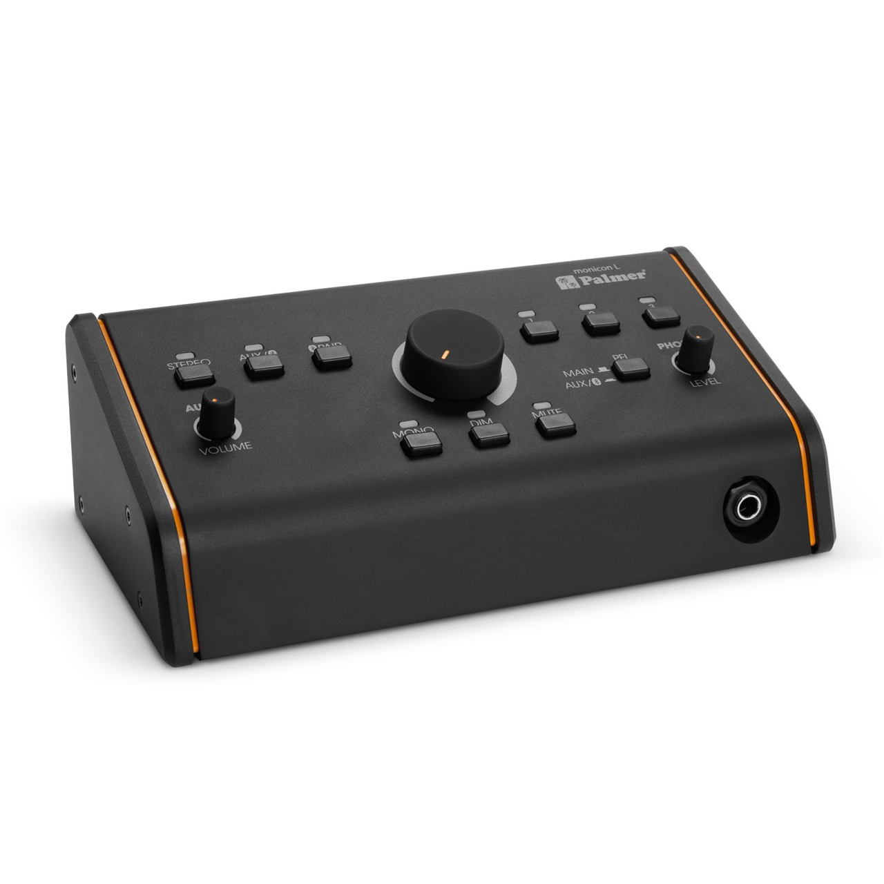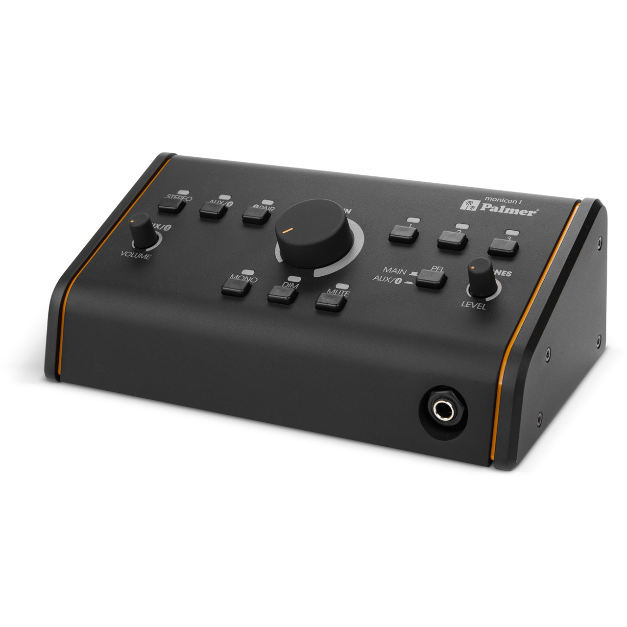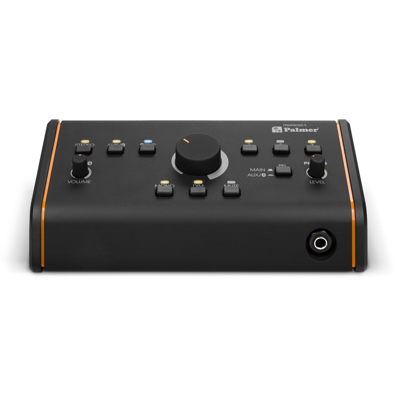 The Palmer MONICON L G2 is a versatile, compact studio monitor controller for professional project studios and ambitious home set-ups. It features three inputs for different signal sources: balanced via XLR/TRS combo sockets as well as AUX and Bluetooth for mobile or digital devices. The inputs and outputs can be switched on/off via dedicated buttons with LED status display.