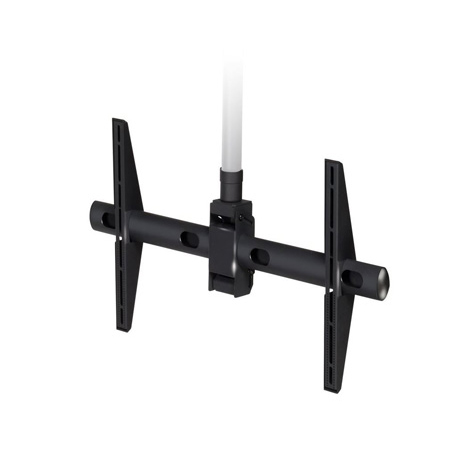 The ECM-3763S Ceiling Mount features a single flat panel mounts that holds displays up to 175 lbs. per head. It suspends a single display from the ceiling and adapts to 1.5 in. NPT threaded pipe or height adjustable pipe adapter. The ECM-3763S mounts displays right out of the box with no adapters needed, works with optional brackets for mini PCs or digital media player adapters, and offers integrated cable management for a clean and organized installation.