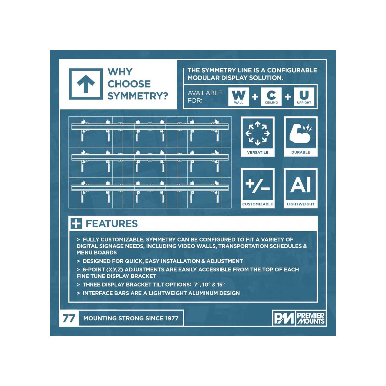 The SYM-IB-28B is a 28.1" long interface bar in the Premier Mounts Symmetry Series. The Symmetry Series is an easy to use modular flat panel display mounting solution, designed for rapid installation and adjustment. This interface bar pairs with Symmetry Series Brackets (Sold Separately)