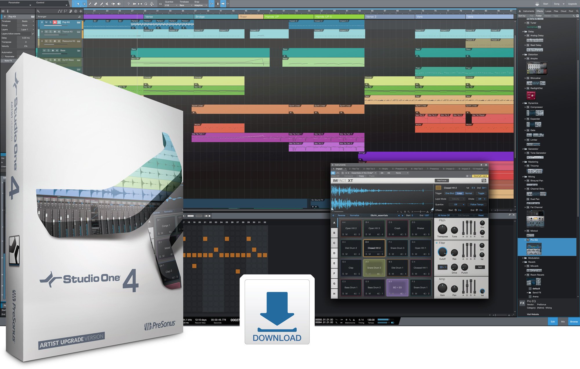 Work better, faster. Studio One 4 Artist is designed for ease of use without sacrificing effectiveness. It seamlessly combines the time-tested recording studio model with today’s beat-oriented production process, so musicians of all genres can being their musical ideas to sonic reality, quickly and easily.