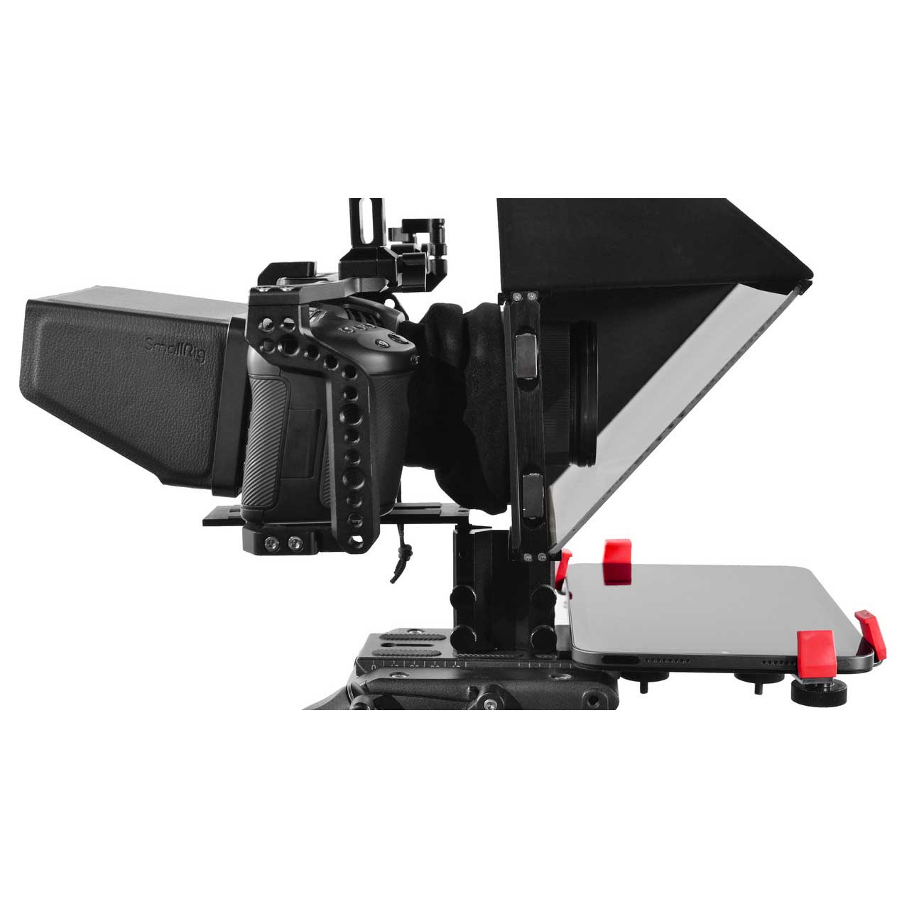 The Prompter People POCKET-CUE-TAB is a Professional and Affordable Smart Phone Based Teleprompter that uses a smartphone for the prompting stheirce. Compatible to Prompt and Shoot with all models of iPhone, and most models of Android, and other model Smart Phones. The Lens slides in to the Hood so you will get No Vignetting like other SmartPhone Teleprompters that attach to the Front of the Lens. The Pocket Cue is the most Modular Smartphone Teleprompter - with the Included Back Sled you can shoot with most standard Mirrorless, DSLR, Pocket Cinema Cameras, and Box Cameras. Includes a stand to support the teleprompter.