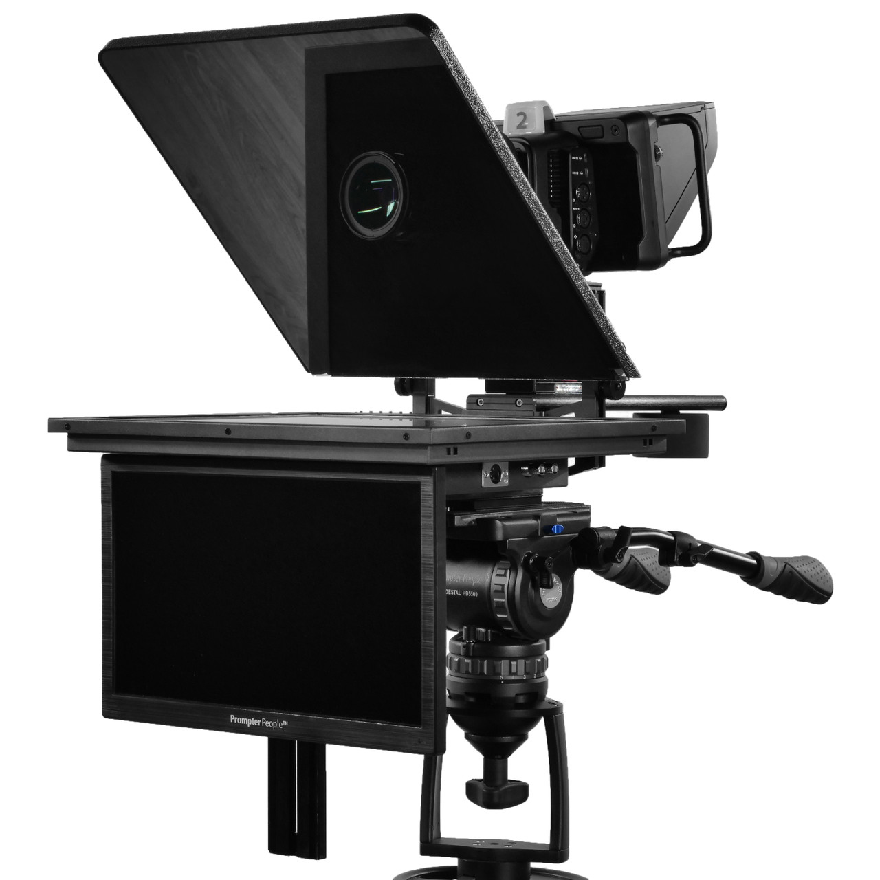 The Prompter People PROP-19HB-15TM ProLine Plus High Bright teleprompter with 15" Talent Monitor, comes completely assembled and ready to use right out of the included padded carry case*. Just add your camera and connect to your tripod. When you are done prompting the beamsplitter folds flat for instant breakdown.