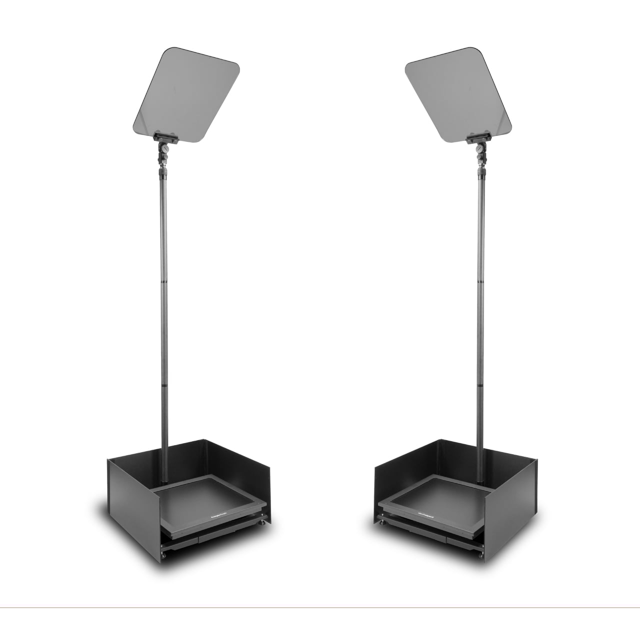 The Prompter People StagePro PRO-SP17PHB-CARB Presidential Teleprompter Pair is ultra adjustable with easy, tool-less set-up, and the carbon fiber poles break down into 3 pieces allowing for adjustable height and portability. All Prompter People monitors are self-reversing for easy prompting. The lightweight, long life LED backlit display offers a bright 1000 nit image for outdoor use. (nit is the unit of visible-light intensity), Both HighBright and Regular monitors can display prompting with either the included PC and Mac software or with any presentation software such as PowerPoint or Keynote.