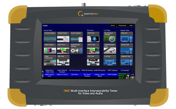The 780C can also be equipped with the optional Auxiliary Channel Analyzer (ACA) utility for monitoring the HDMI or HDBaseT DDC (HDCP and EDID) transactions and hot plug events. The ACA option enables you to monitor the DDC either while emulating an HDMI or HDBaseT source and/or sink or passively monitoring the HDMI DDC, hot plug events and CEC messages between an HDMI source and sink.
