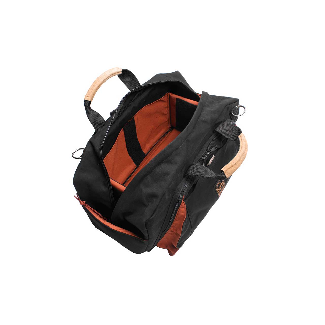 The RUN BAG is essential for news and production crews. Spare tapes, batteries, cables and microphones are neatly stored. The main compartment is foam padded with a padded rigid bottom. Two dividers span the 7" Length with a 12" divider in between, providing a useful array of sub-divisions, or they can all be folded out of the way for larger items. On the outside there are two large zippered compartments for cables or other items. Rugged stand-up handles with leather grips, and medium weight shoulder strap included.