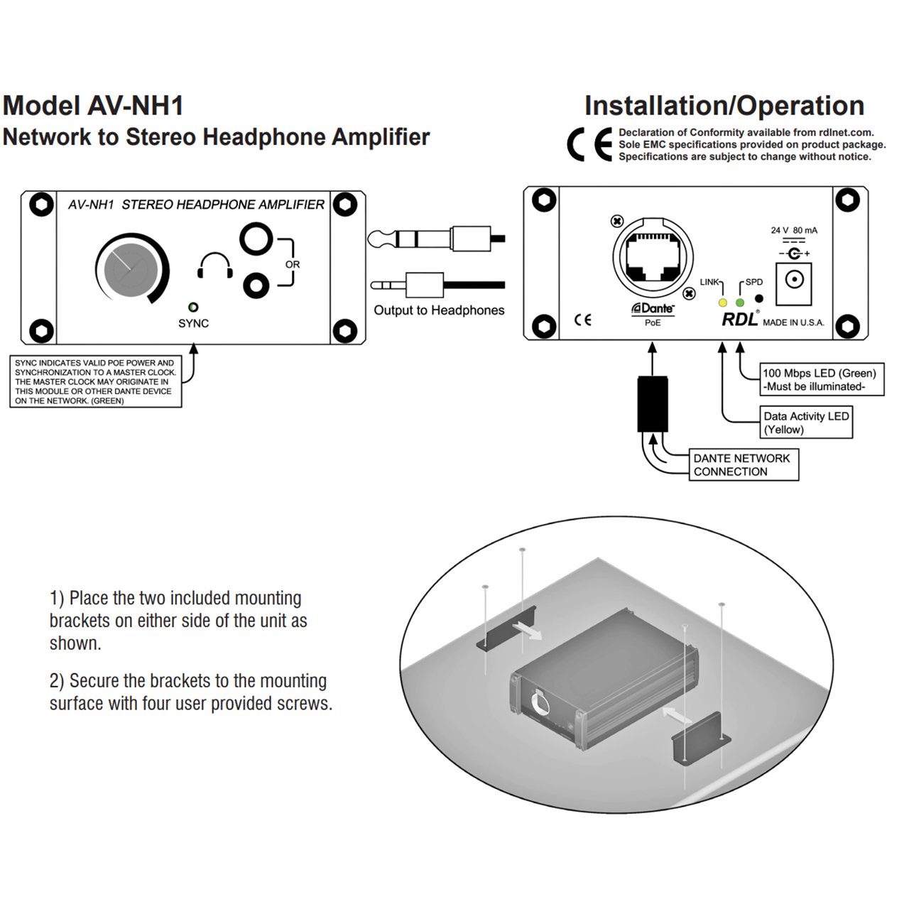 The AV-NH1 is constructed in a durable, professional all-metal enclosure suitable for use on stage or in studio, or mounted to any flat surface. For fixed installations, mounting brackets are included. This full-featured AV-PAK product is engineered and manufactured in the USA for continuous duty in demanding installations.