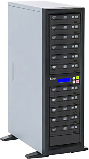 Turn out 88 DVDs or 198 full length CDs per hour with this ever popular 11 target standalone duplicator. A favorite for its ease of use and robust feature set. Capable of keeping up with high-output on-demand duplication requirements and the perfect solution for in-house duplication of medium to large jobs. Commercial grade quality, an affordable price, and high output duplication make the Recordex TechDisc Pro DVD1100H an easy choice. Just upload your data to the 250Gb hard drive and burn away! ..... How's that for Professional Duplicating!