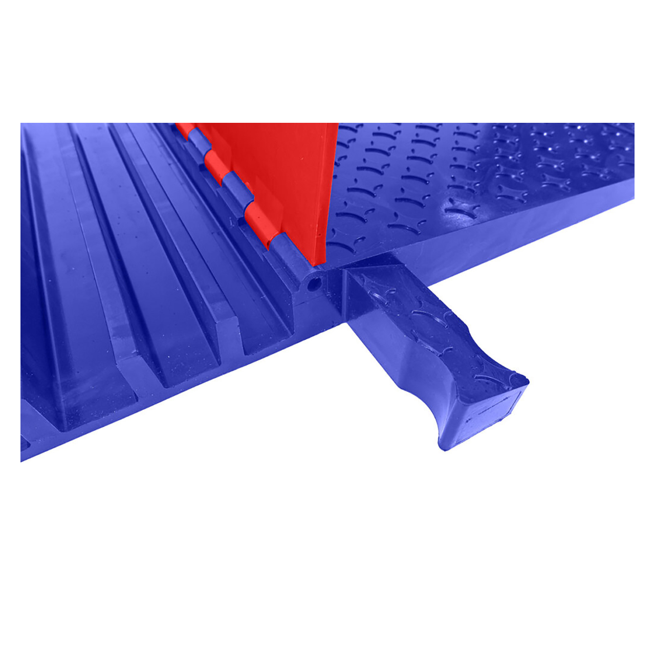 Introducing the RhinoGuard™ ADA Cable Protector: Made from durable, all-weather polyurethane, the RhinoGuard™ ADA Cable Protector ensures safe and compliant passage over cables for wheelchairs, pedestrians, and vehicles. Designed with a gradual slope to meet ADA regulations, this ramp provides a smooth and accessible transition for all users. Featuring a modular, interlocking design, the ramp is easy to configure and extend to meet the needs of any application. Fully compatible with RhinoGuard™ 5-channel Cable Protectors, it offers seamless integration without the need for specialized tools or equipment.