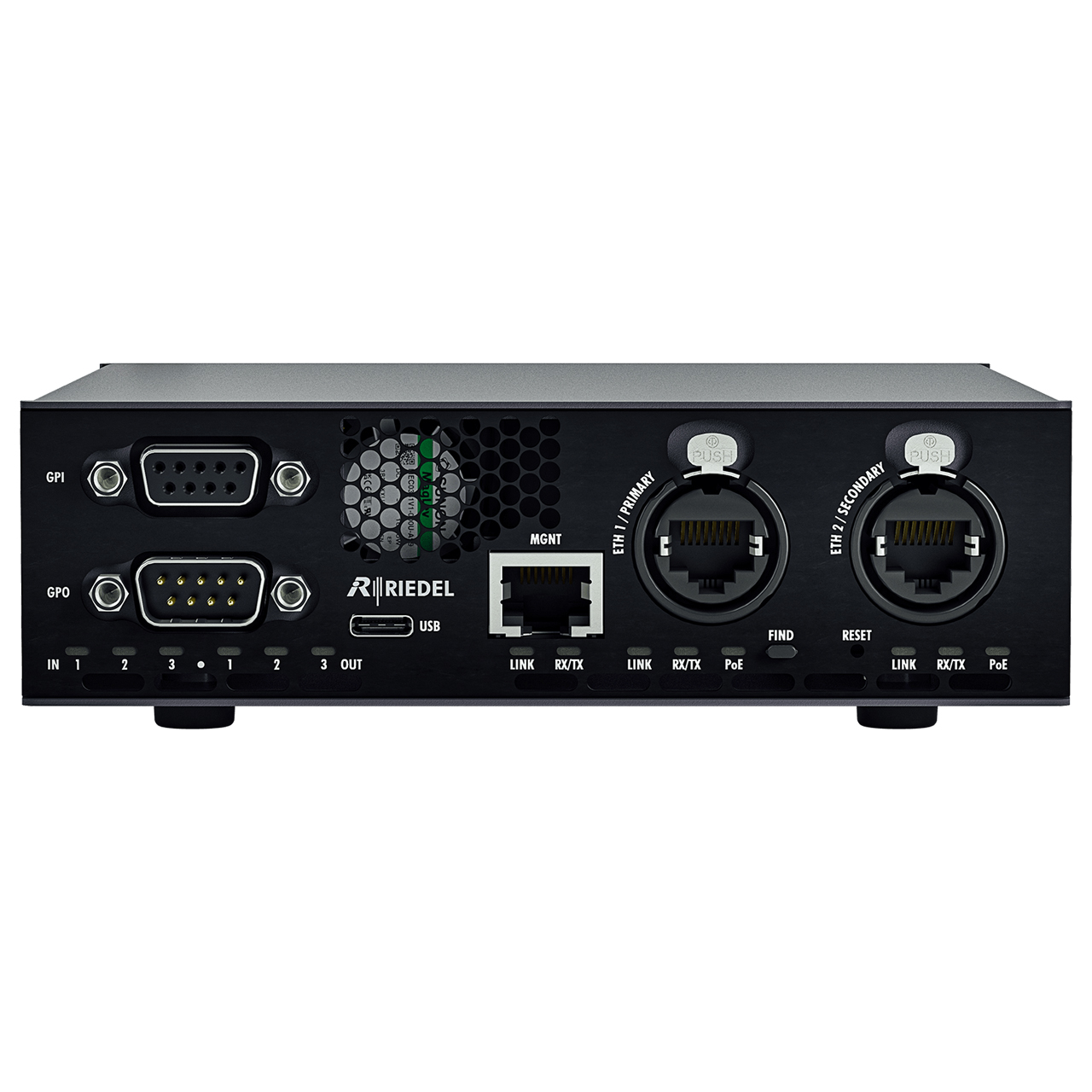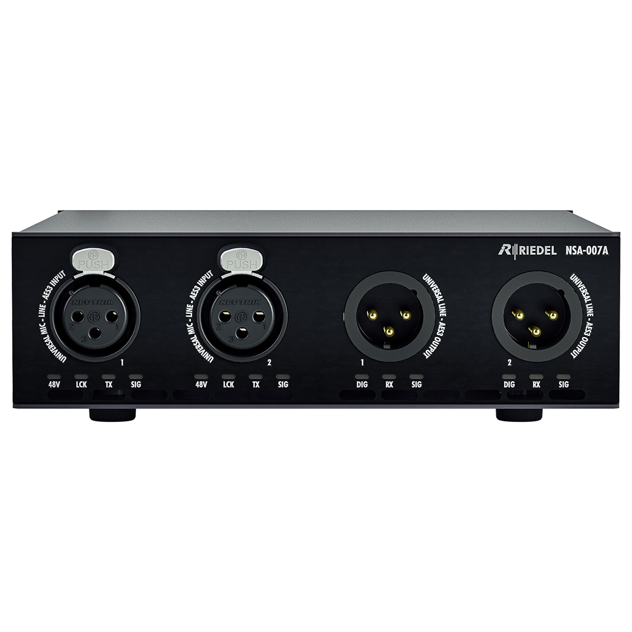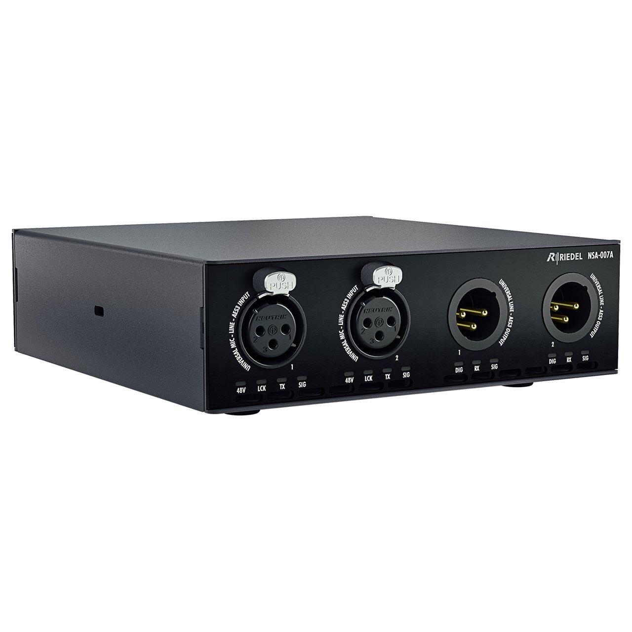 The Riedel SA-007A is a Dual In/Out (4-Wire) SMPTE 2110 audio interface that features 2 inputs and 2 outputs in broadcast quality and can also function as a classic dual analog or digital 4-wire device for Artist and Bolero intercom systems.