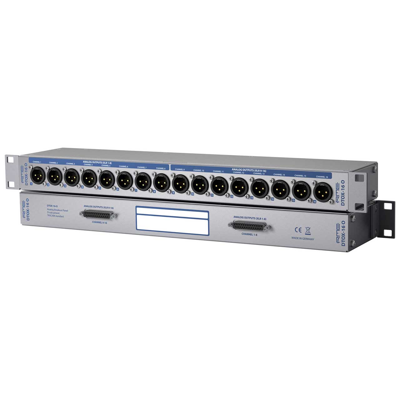 The RME DTOX-16 breakout panels are the perfect rack solutions for interconnecting multichannel XLRs with the common D-sub connector format. DTOX-16O connects 16 XLR outputs to two D-sub 25-pin connectors (channels 1-8 and channels 9-16). The breakout panel supports all interfaces using analog 25-pin D-sub inputs as well as the following RME interfaces: